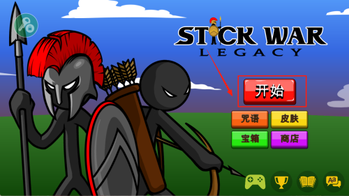 3、在主菜单点击“开始”按钮,暂不进入皮肤、宝箱或商店。