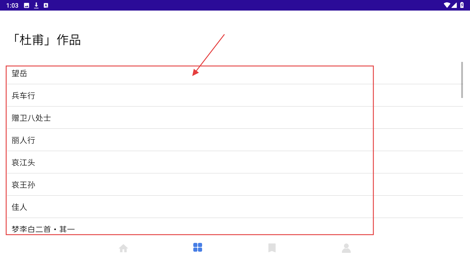 4、聚焦特定作者,如【杜甫】,浏览其作品列表,从【望岳】开始系统学习该作者诗作。