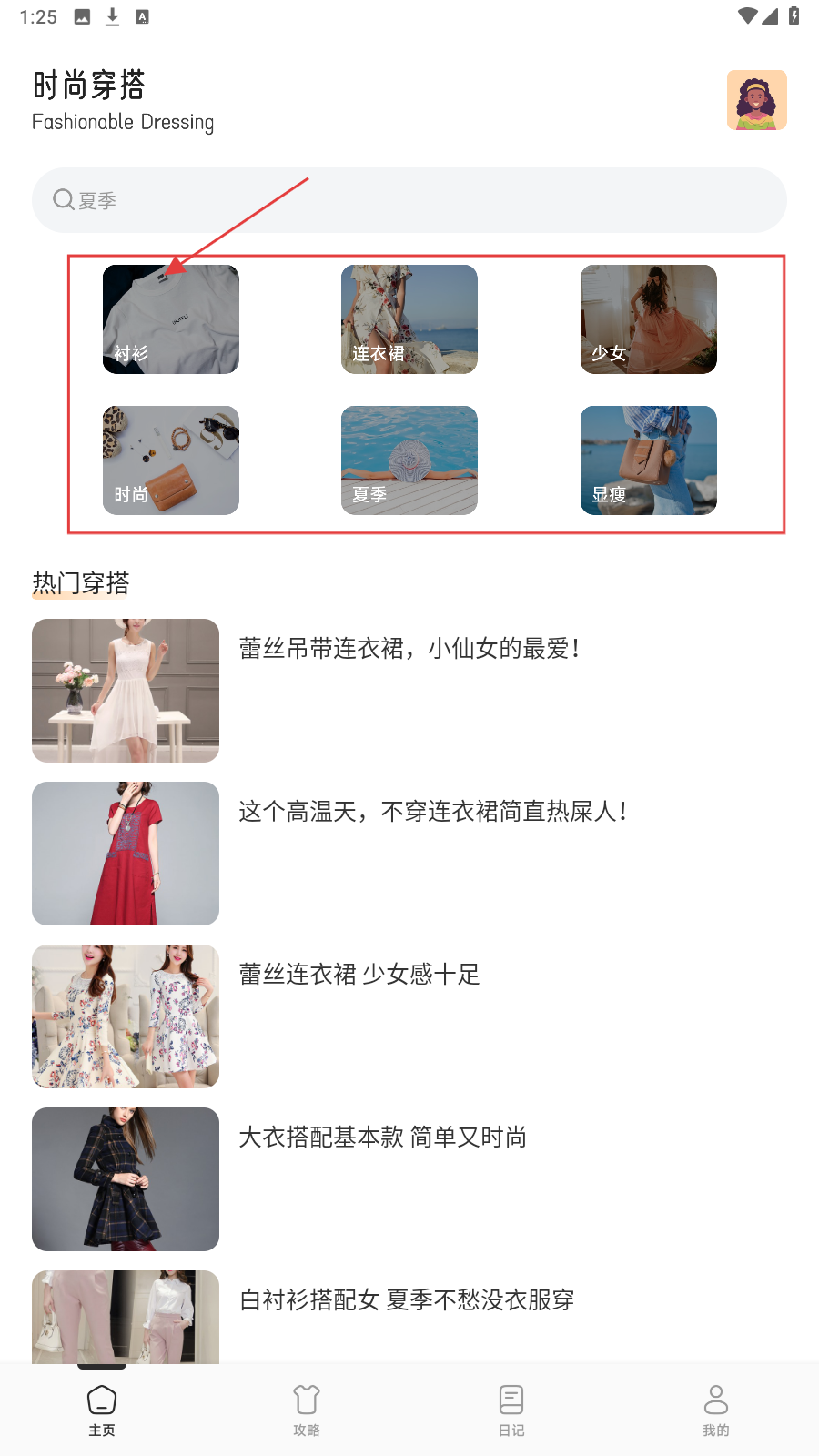 4、切换到【穿搭攻略】页,通过【服装学习】文章,系统提升穿搭审美和技巧。