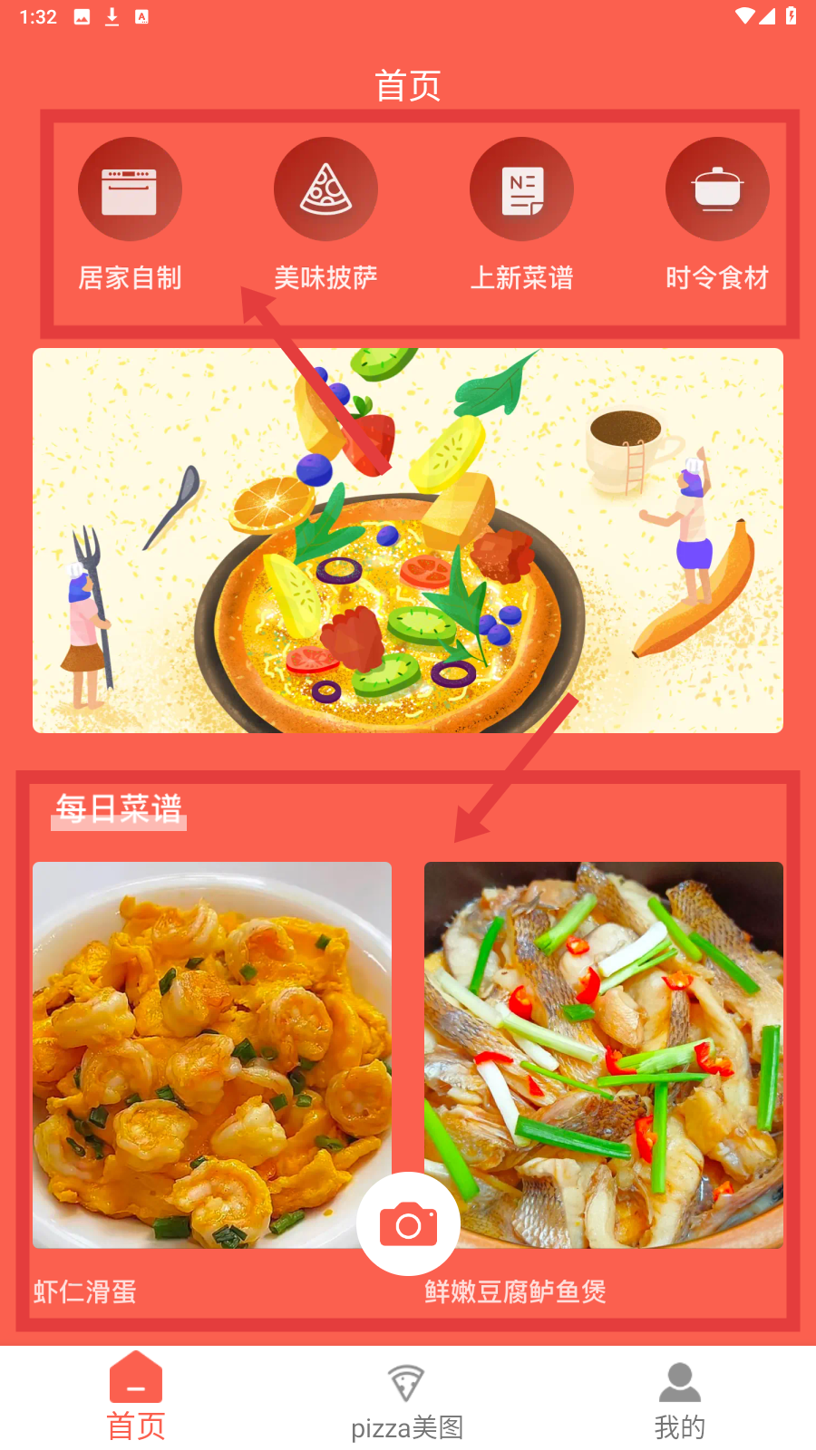 1、打开应用首页,选【居家自制】分类,进入菜谱列表页。