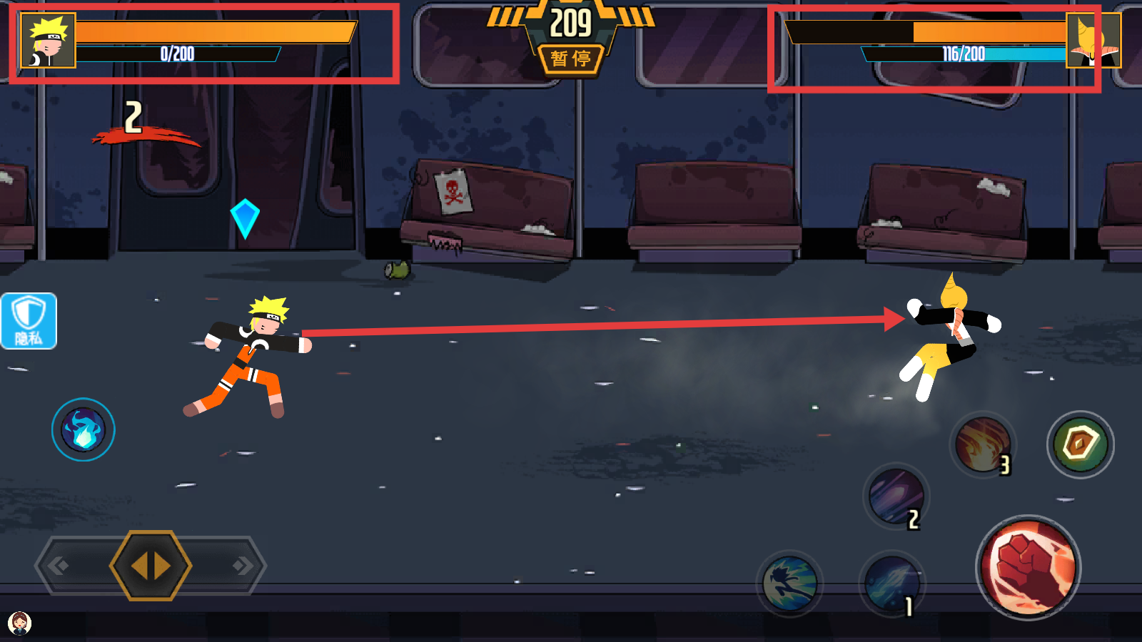 3、观察双方血量条,抓住时机发起攻击,消耗敌方血量至劣势,同时留意自身血线维持生存。