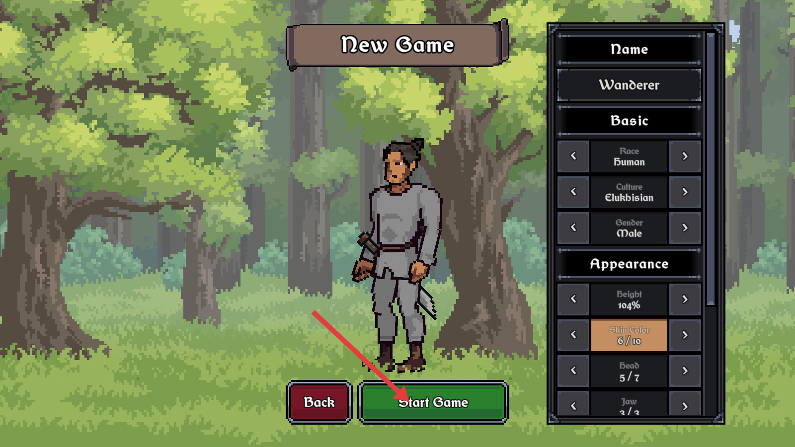 1、角色创建后,点击【StartGame】开启冒险,初始持剑盾迎战野外敌人(Looter)。
