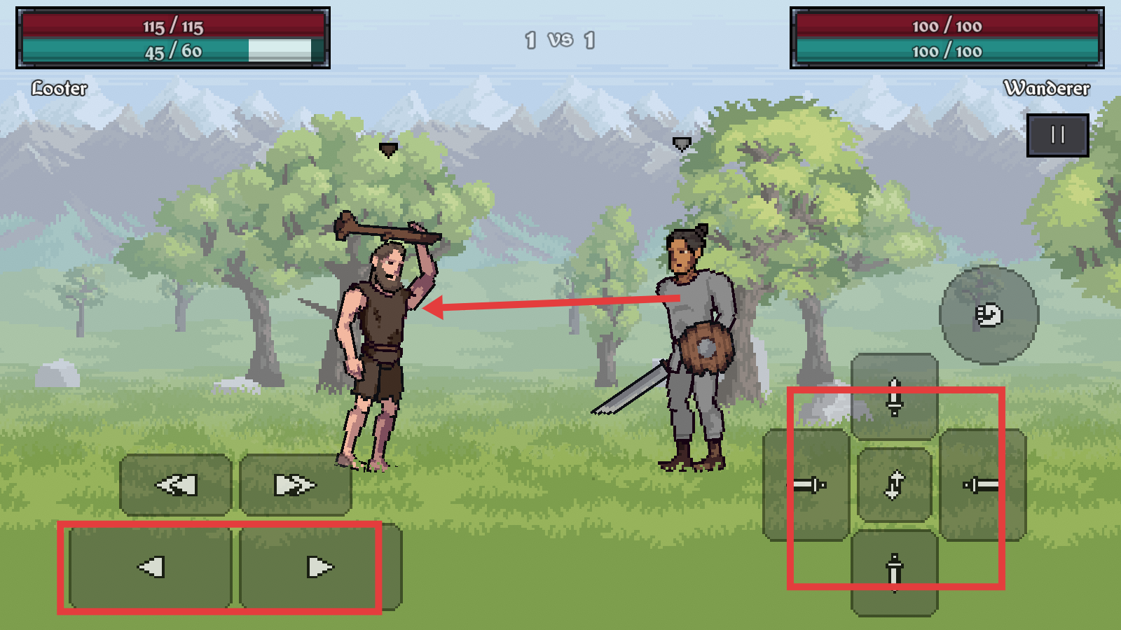 2、左侧【虚拟摇杆】控移动,右侧技能键组合攻击,聚焦左上角敌人血条,持续输出伤害。