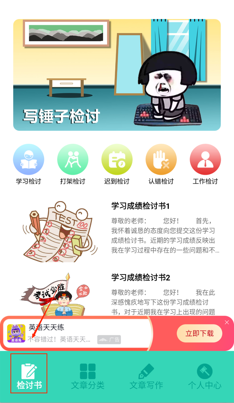 1、下载安装后进入检讨书模板板块,选择适合场景的模板。根据提示填写相关信息,系统自动生成完整检讨书内容。