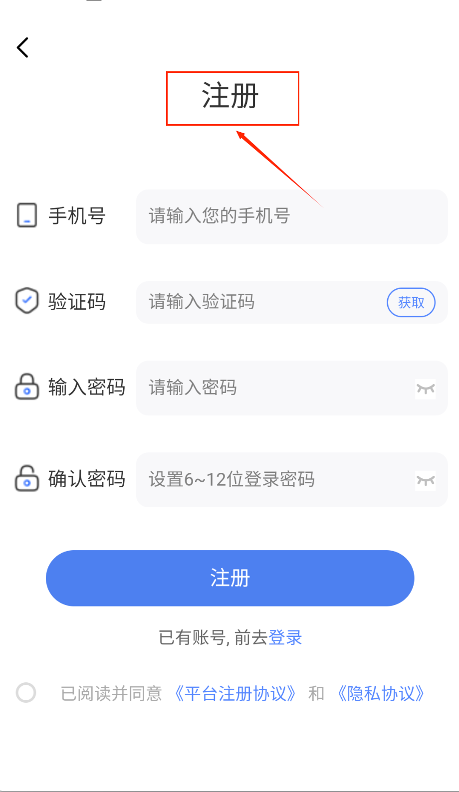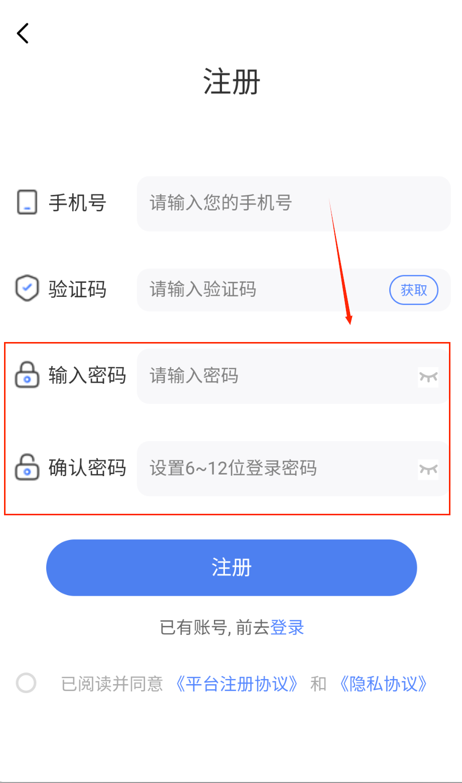 2、注册时要仔细填写手机号,获取验证码后及时输入。设置密码记得要6到12位,两次输入要保持一致。