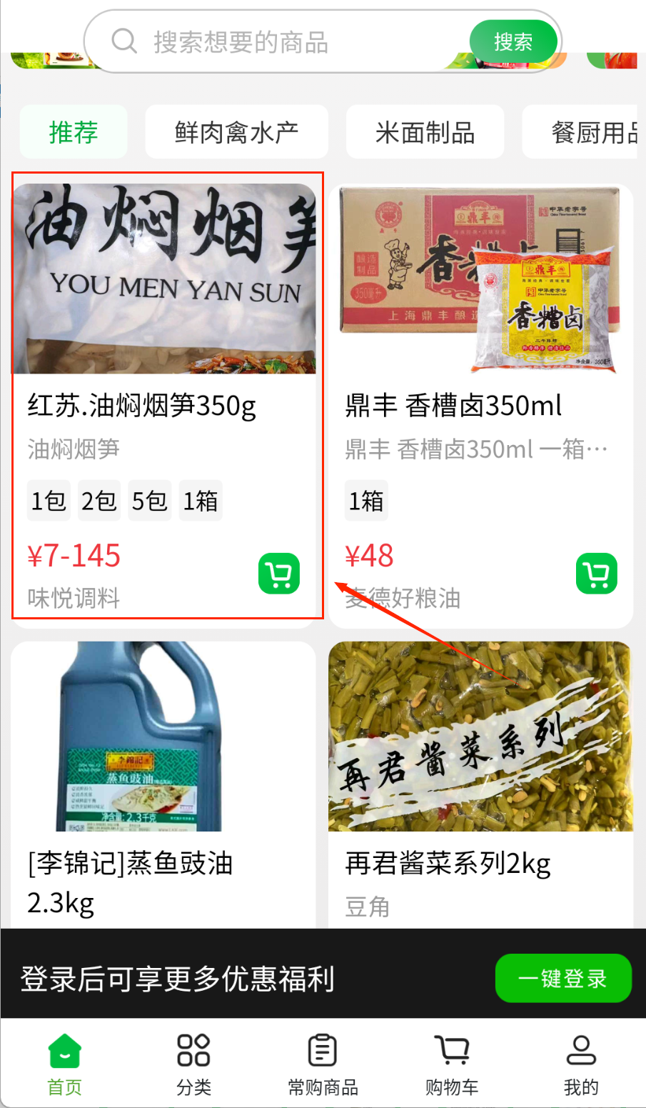 1、平台汇集了丰富多样的生鲜食材资源,从新鲜蔬果到优质肉禽应有尽有,全面满足餐饮商户的日常经营需求,自动推送可能需要的相关商品。