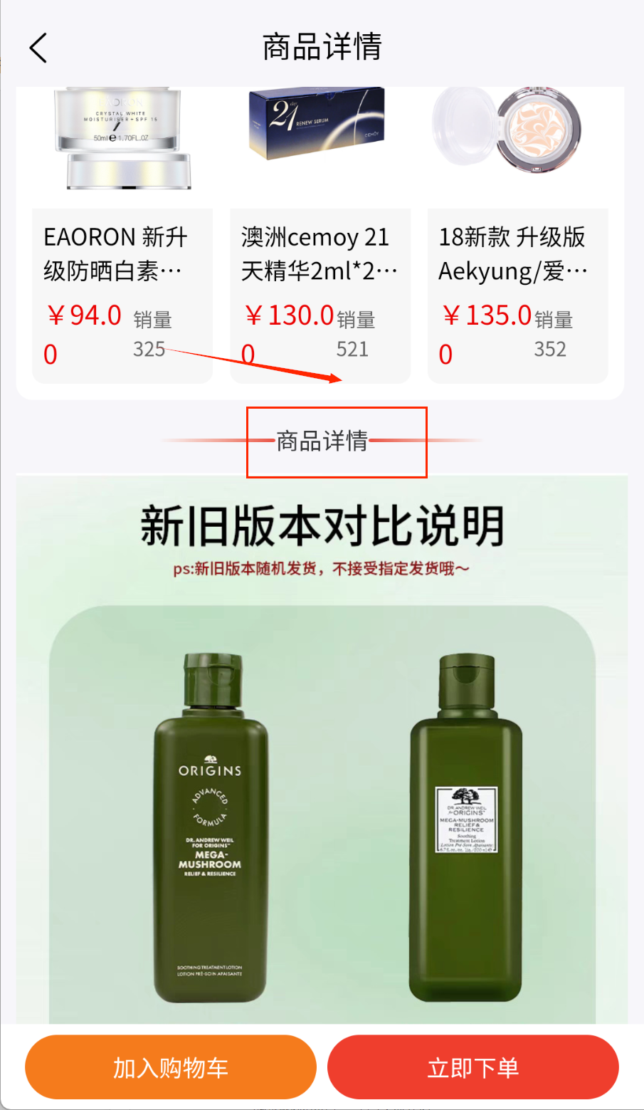 2、点击商品图片进入详情页,仔细查看商品规格参数和用户真实评价。喜欢的话可以加入购物车继续选购。