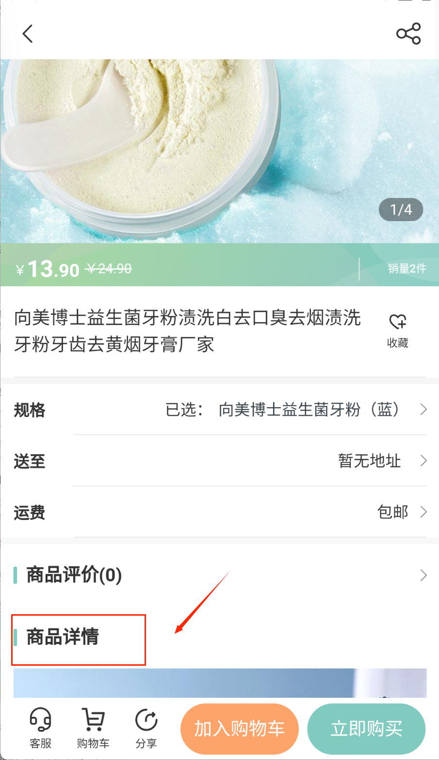 2、点击商品图片进入详情页,仔细查看商品规格参数和用户真实评价。喜欢的话可以加入购物车继续选购。