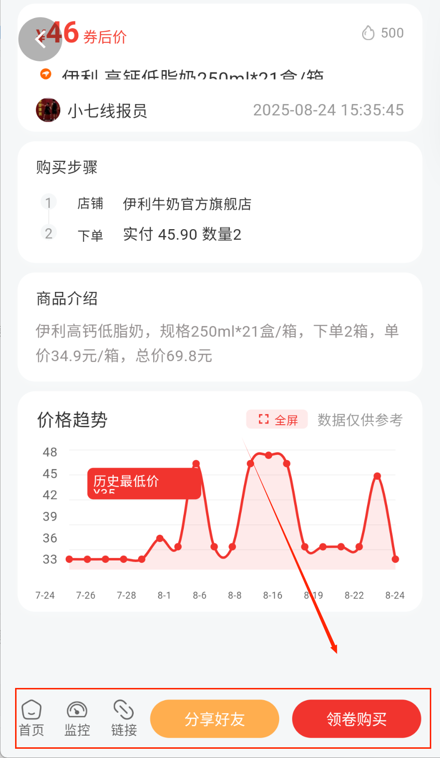 2、实时的价格监控跟踪商品价格波动,及时提醒最佳购买时机。优惠券自动匹配功能最大化节省开支,享受叠加优惠。