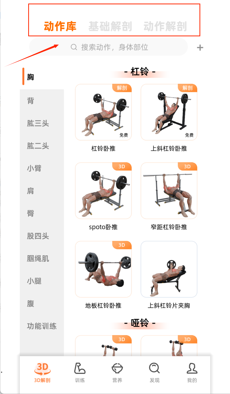 2、动作库收录数百种训练动作的3D解析,支持慢放和循环播放学习。收藏夹功能保存常用动作,快速组建训练计划。