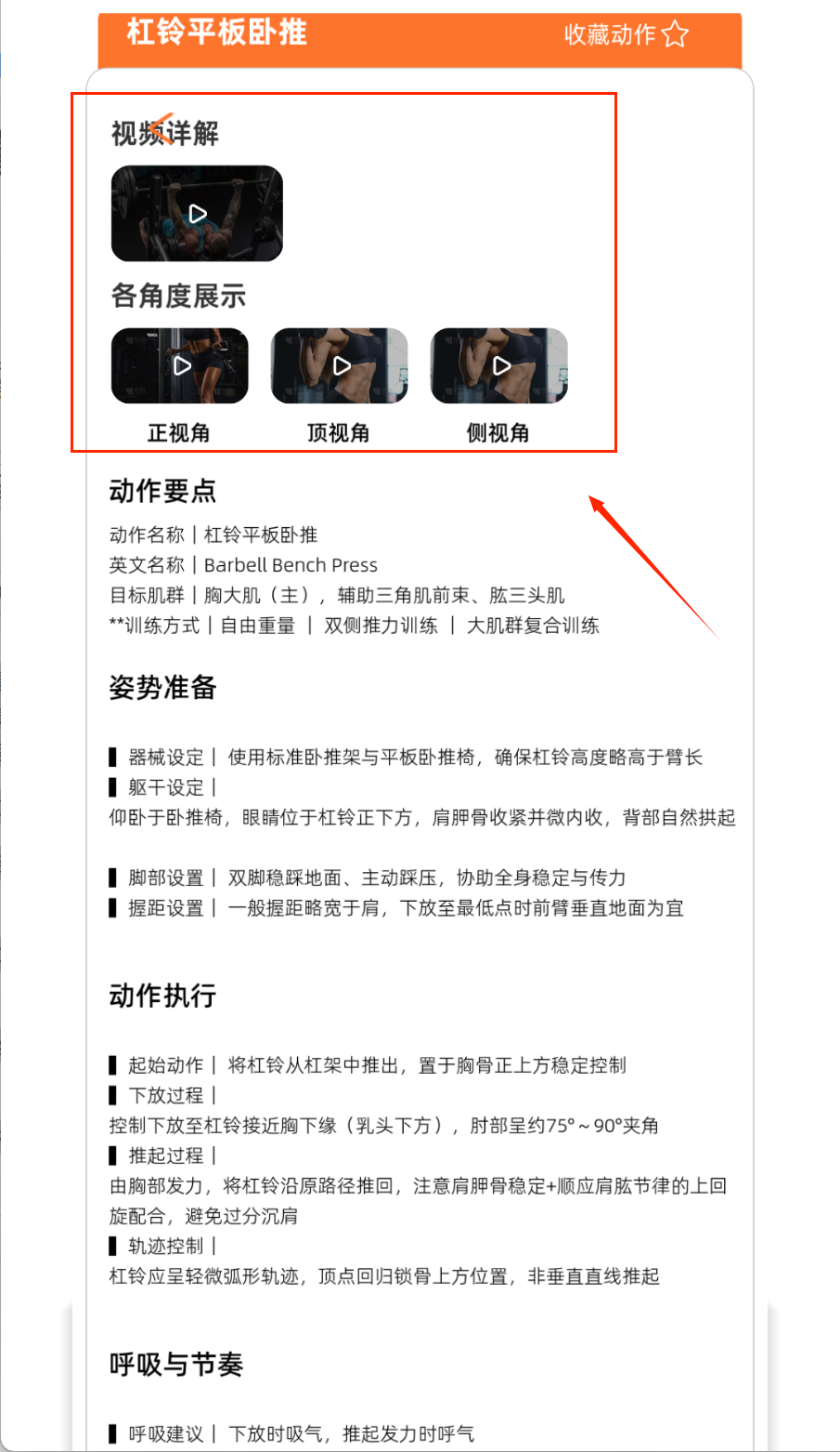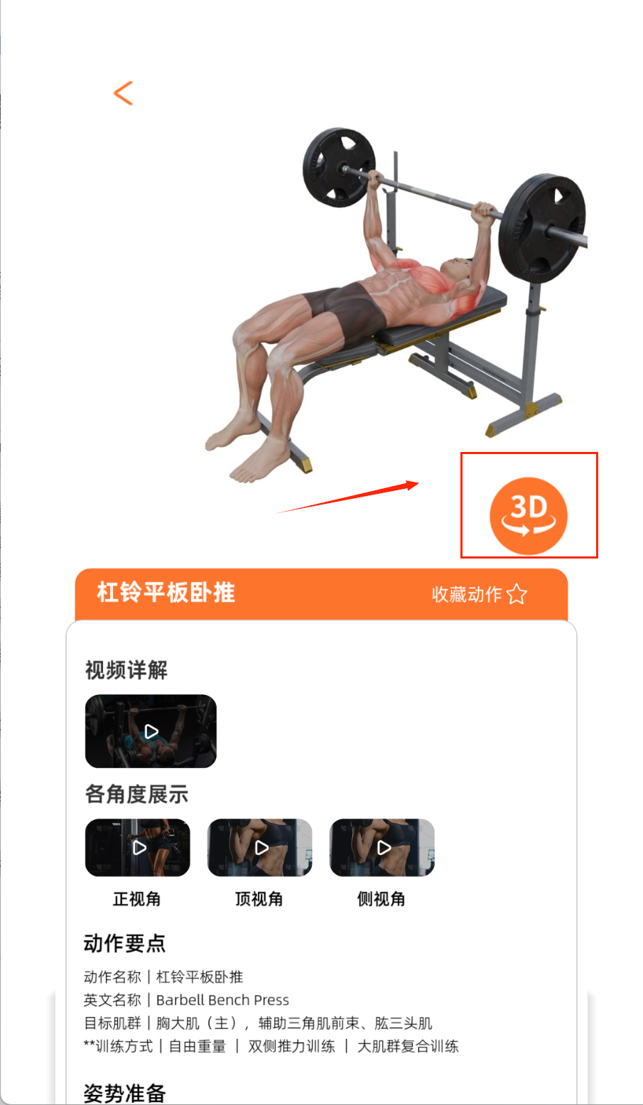 1、专业的3D动作解析展示每个训练动作的细节和发力要点,避免错误姿势导致受伤。多角度视图帮助全面掌握动作标准,提升训练效果。