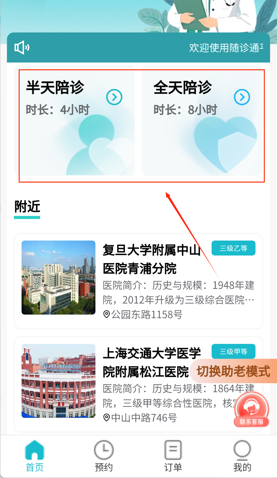 1、预约中心提供各类陪诊服务选择,支持按医院、时间和服务类型筛选。服务详情页展示陪诊员资质和用户评价,帮助做出选择。
