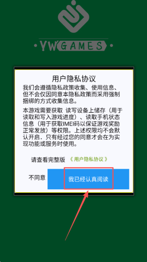 1、点击“我已经认真阅读”按钮,同意用户隐私协议。
