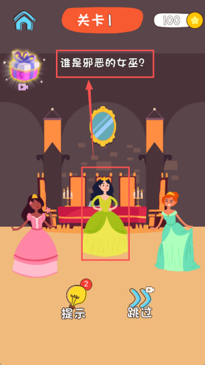 3、在关卡界面,点击提示按钮获取线索,选择正确的答案。