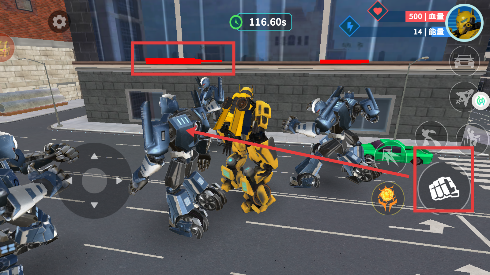 3、遭遇敌方机甲时,点击右下角【拳头】图标,发动近战攻击,快速清敌。