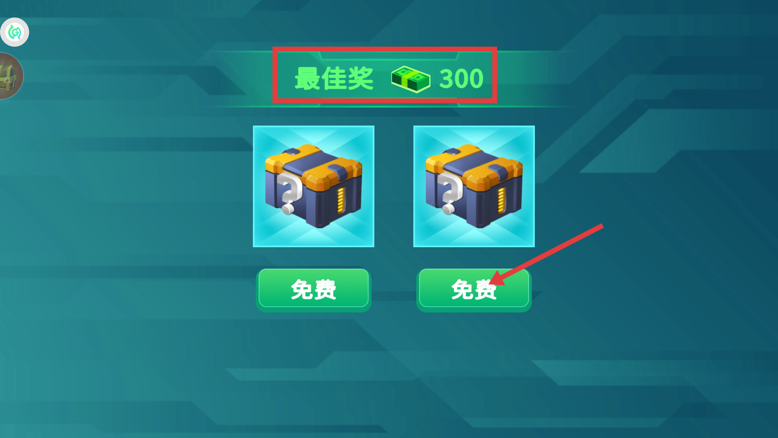 4、完成任务后,点击界面【免费】按钮,领取宝箱与【最佳奖-300】金币,积累资源。
