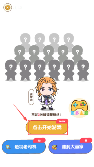 1、点击“点击开始游戏”按钮,进入游戏并解锁新粉丝。