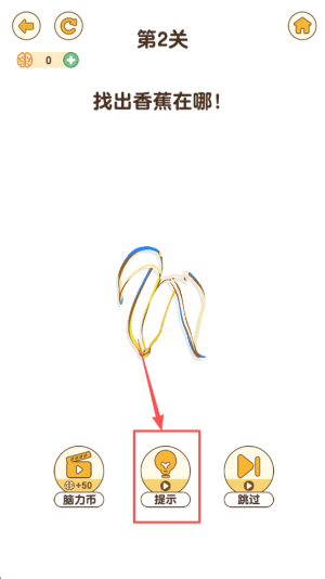 3、在第2关中,点击“提示”按钮,找出隐藏的香蕉。