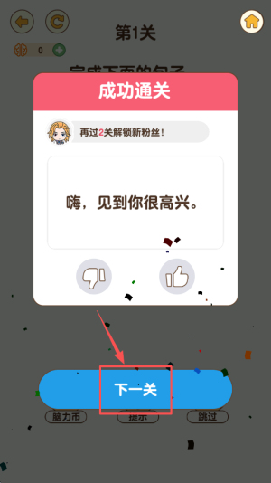 4、成功通关后,点击“下一关”继续游戏或获取更多提示。