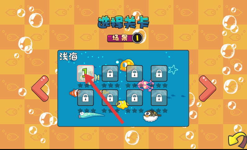 1、选关优先挑战【浅海-场景1-关卡1】,解锁关卡逐步推进,熟悉基础玩法再尝试后续。