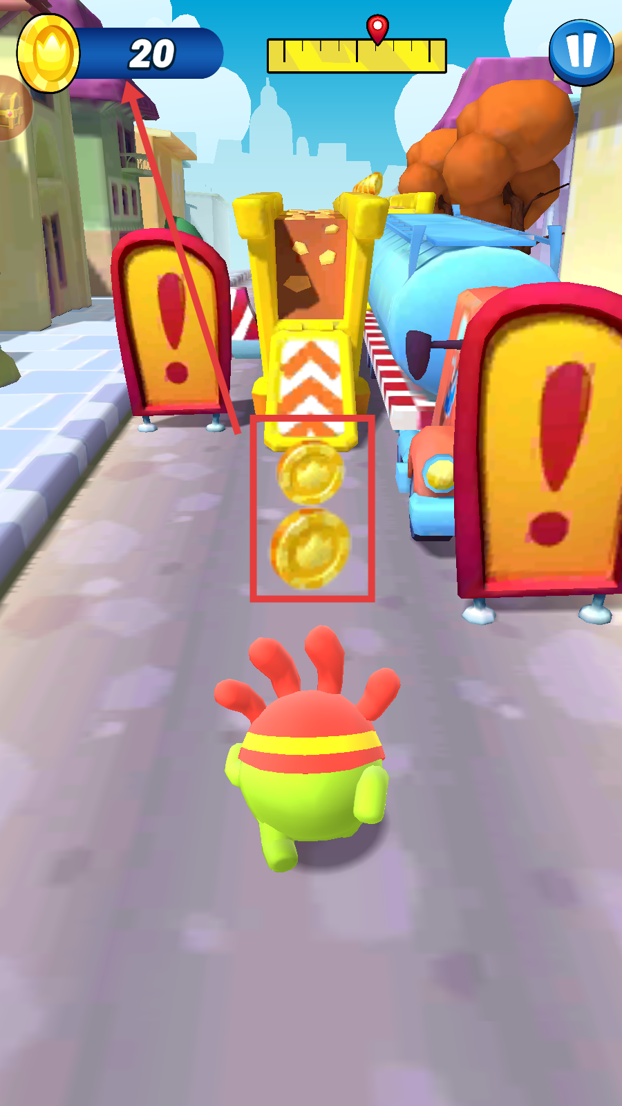 3、冲刺中优先拾取道路中央金币,提升左上角金币数值,为后续积累资源。
