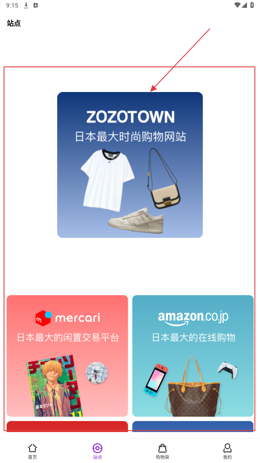 1、进入【站点】页,点击【ZOZOTOWN-日本最大时尚购物网站】卡片,开启时尚购物之旅。