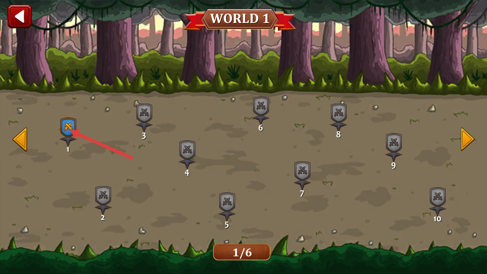 1、进入【WORLD-1】,优先选择标有蓝色徽章的【关卡-1】,开启基础防御战,熟悉战斗逻辑。