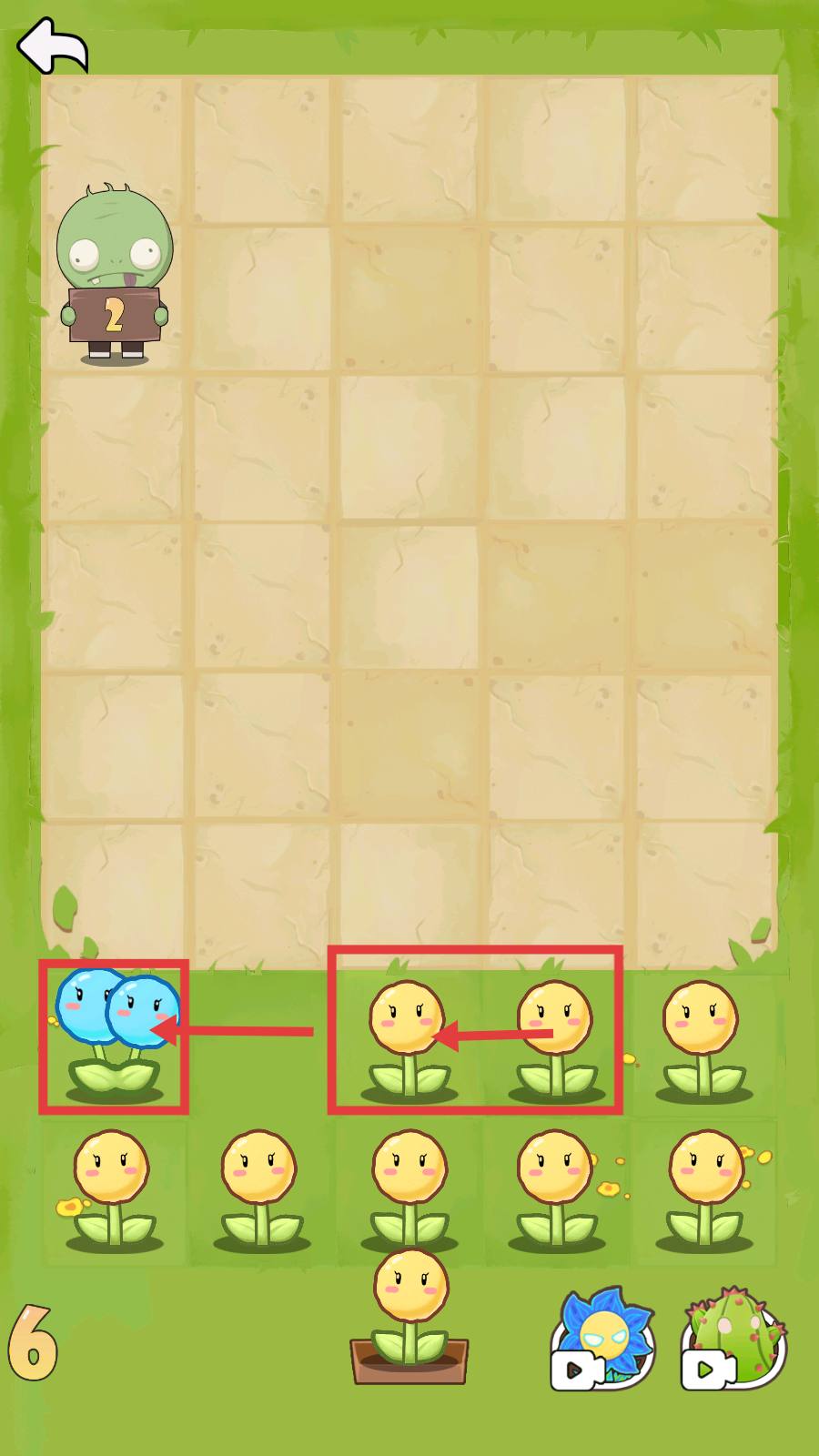 3、积累资源推动黄色植物进化,逐步替换为蓝色植物,强化阵线应对高阶僵尸。