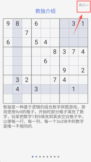 2、阅读数独介绍并点击“跳过”以跳过说明。