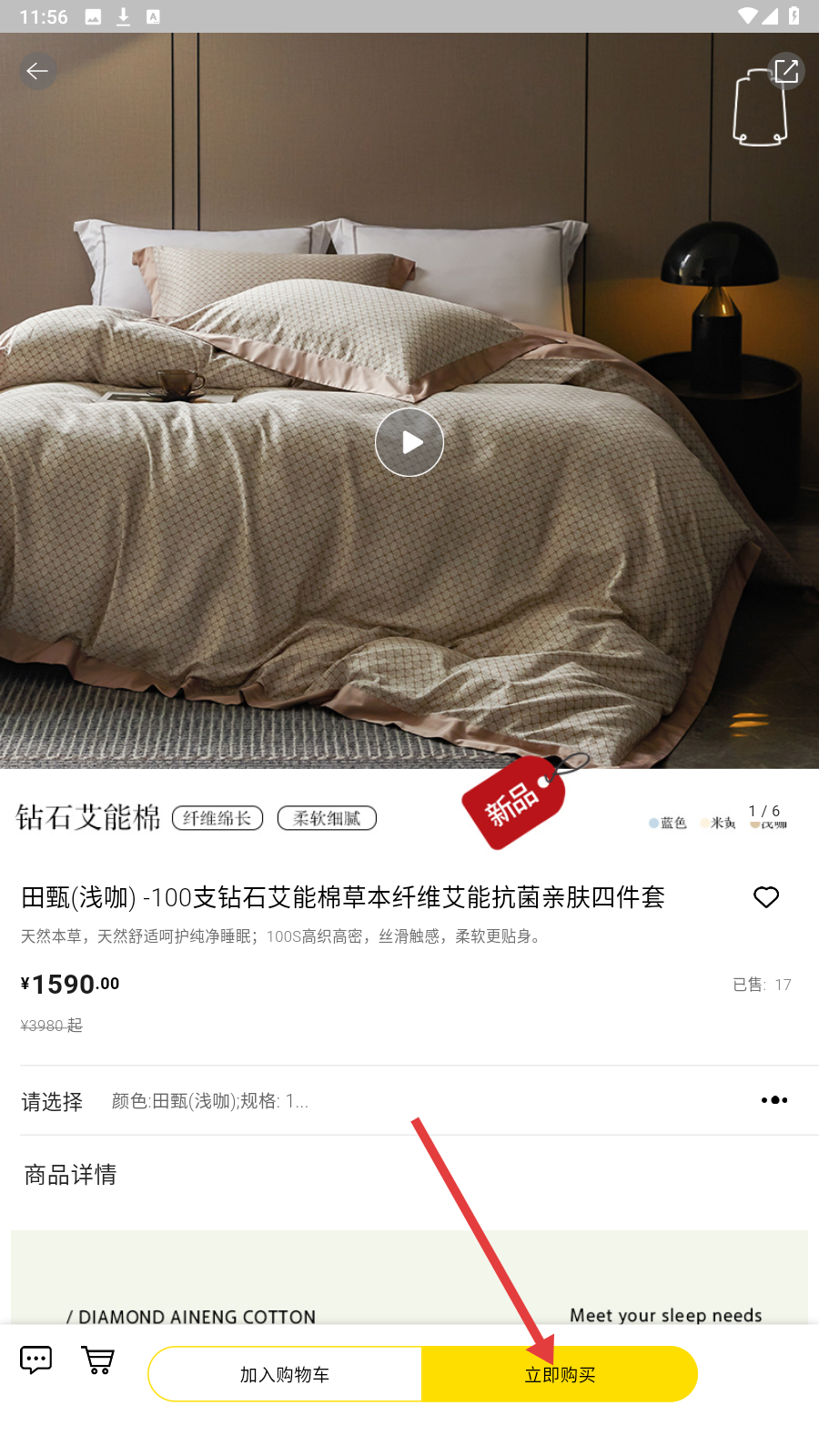 2、看中钻石艾能棉四件套,点【立即购买】,快速下单心仪床品。