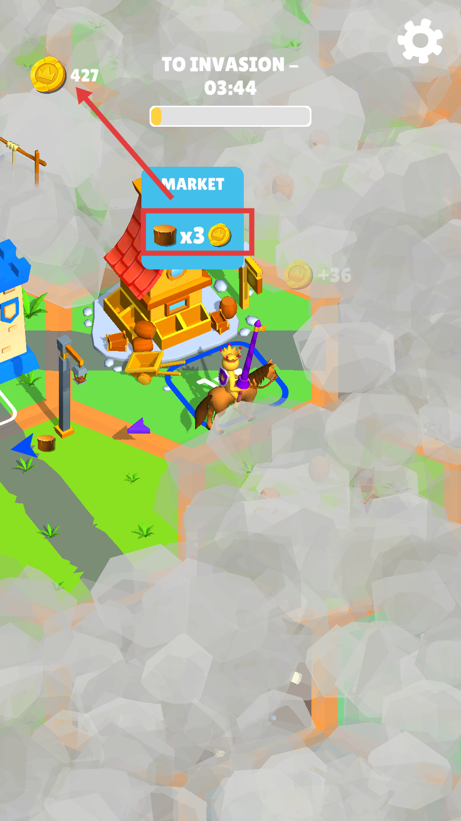 2、前往【MARKET】建筑,消耗3木材兑换金币,快速提升货币储备。