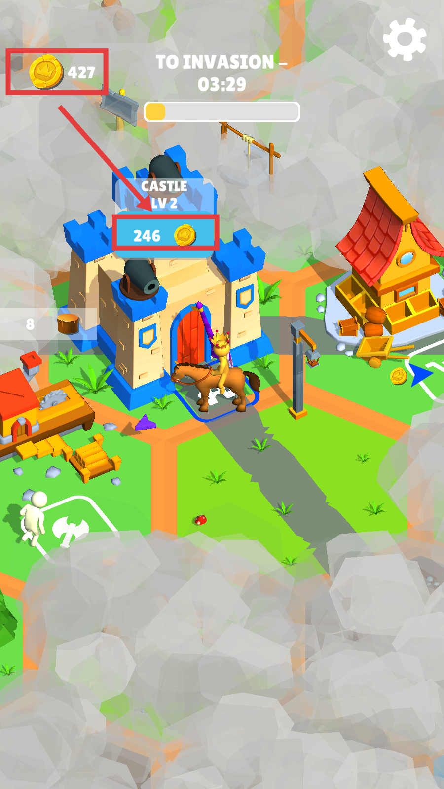 3、攒够427金币后,点击【CASTLE-LV2】消耗246金币升级,解锁城堡新功能。