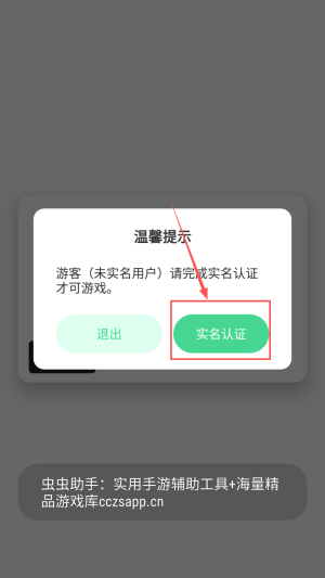 2、在温馨提示页面,点击“实名认证”完成身份验证,游客无法继续。