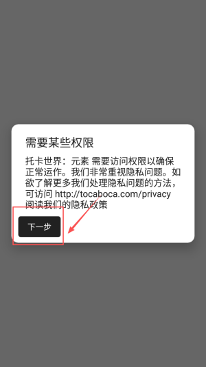 4、阅读权限说明,点击“下一步”授权所需权限,游戏即刻启动。