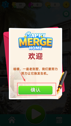 4、出现欢迎语“哇噢,一座老别墅……”后点击“确认”,即可正式开启翻新。