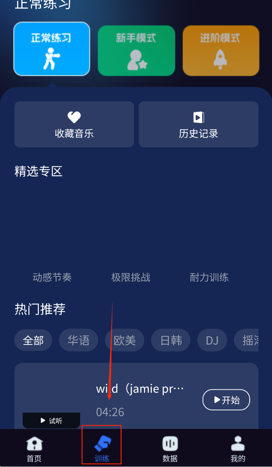 2、音乐库包含流行摇滚电子等多种风格的训练曲目,支持创建自定义播放列表满足不同用户的音乐偏好需求。