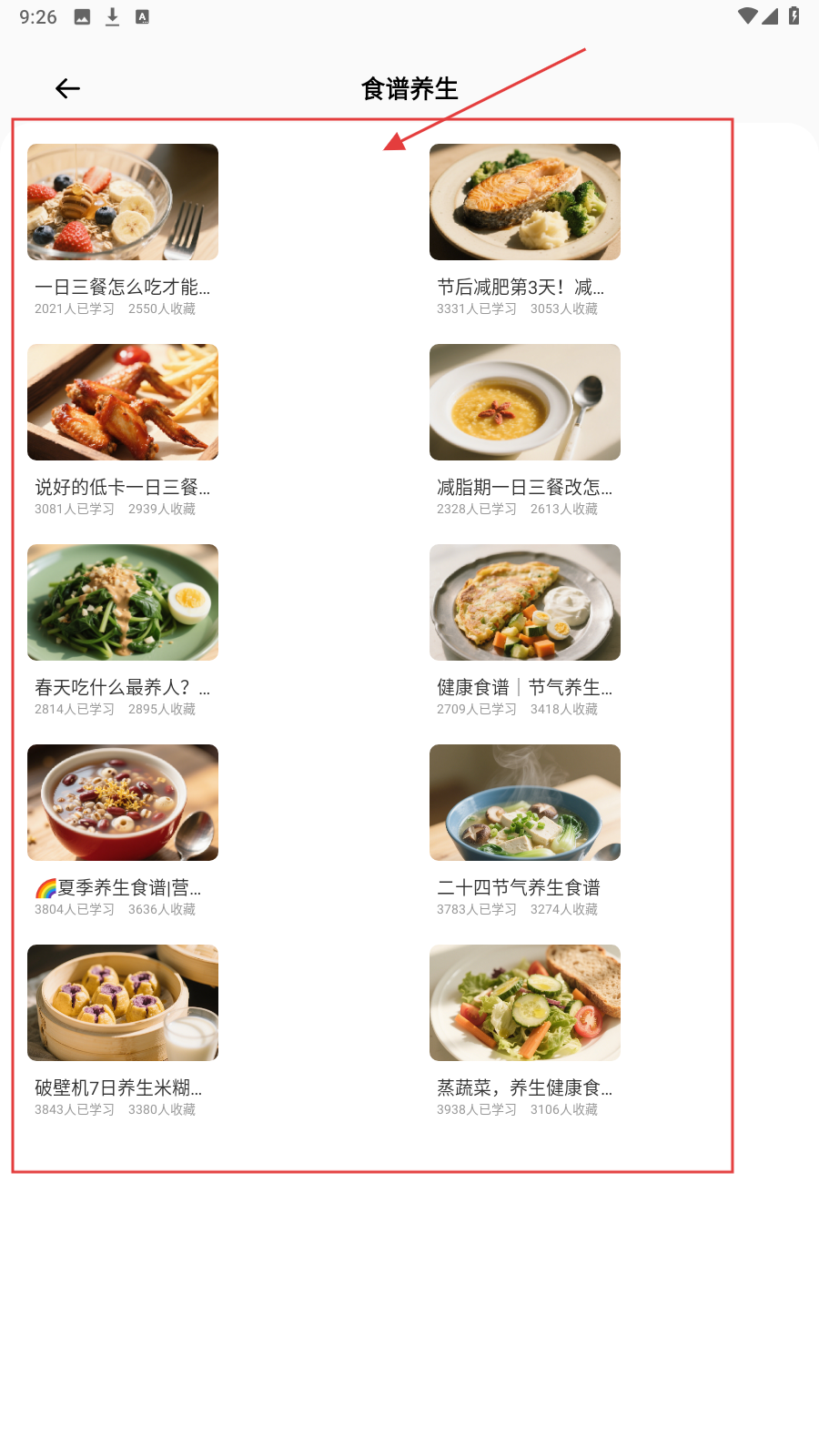 4、回到首页,点【食谱养生】-【更多】,选养生食谱(如节后减肥餐)学习。