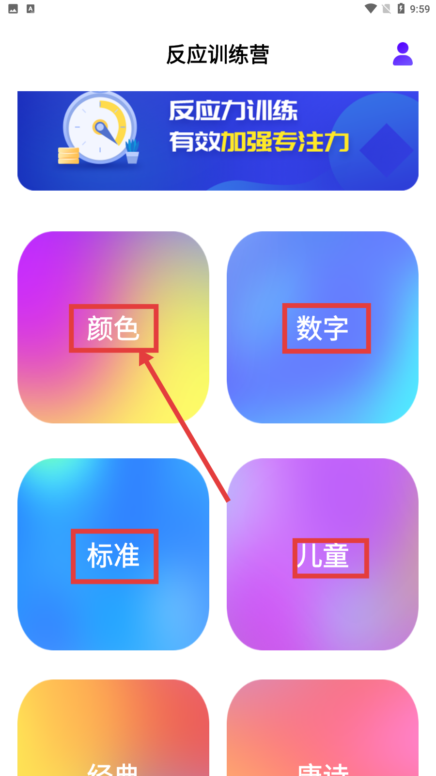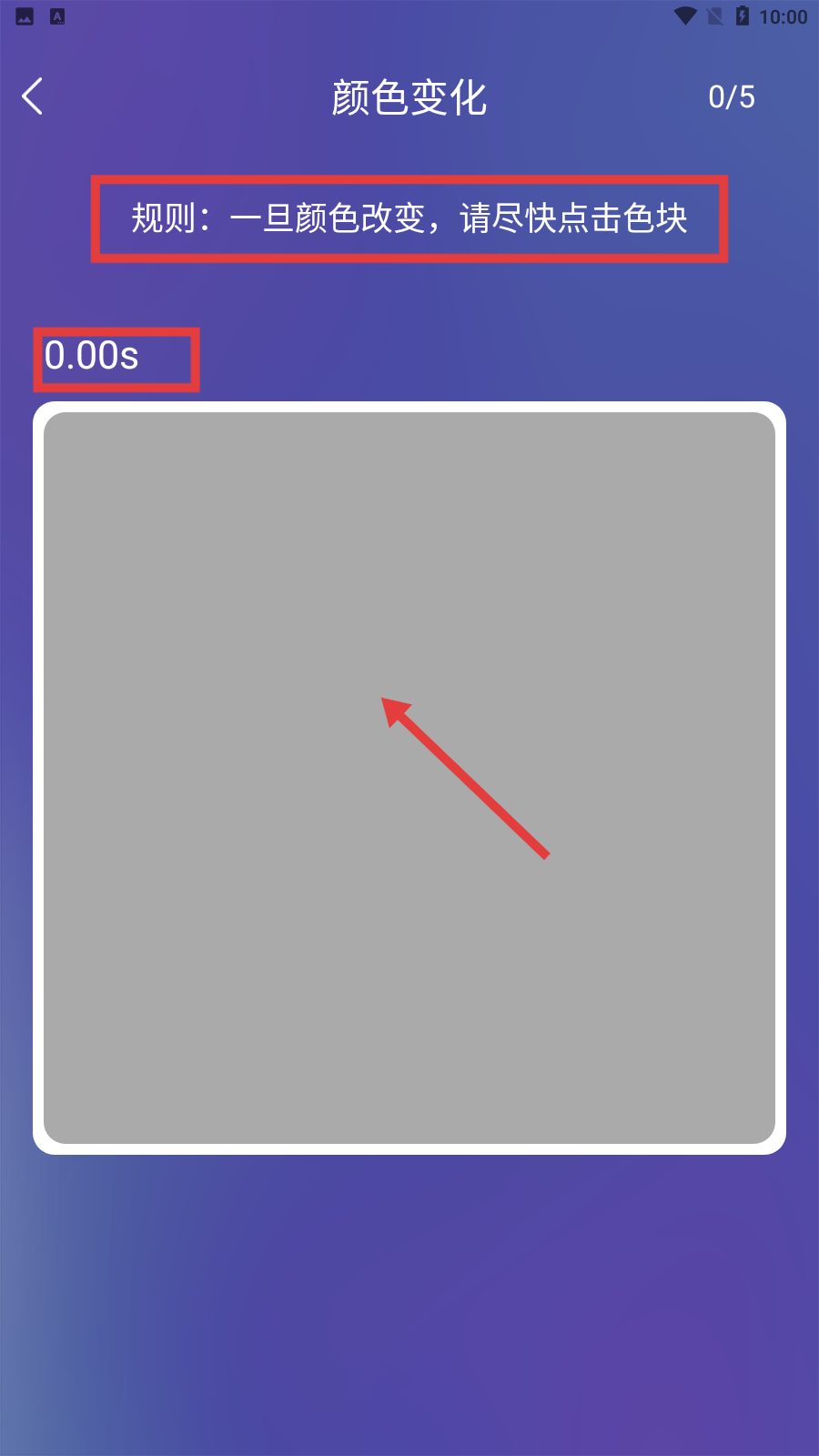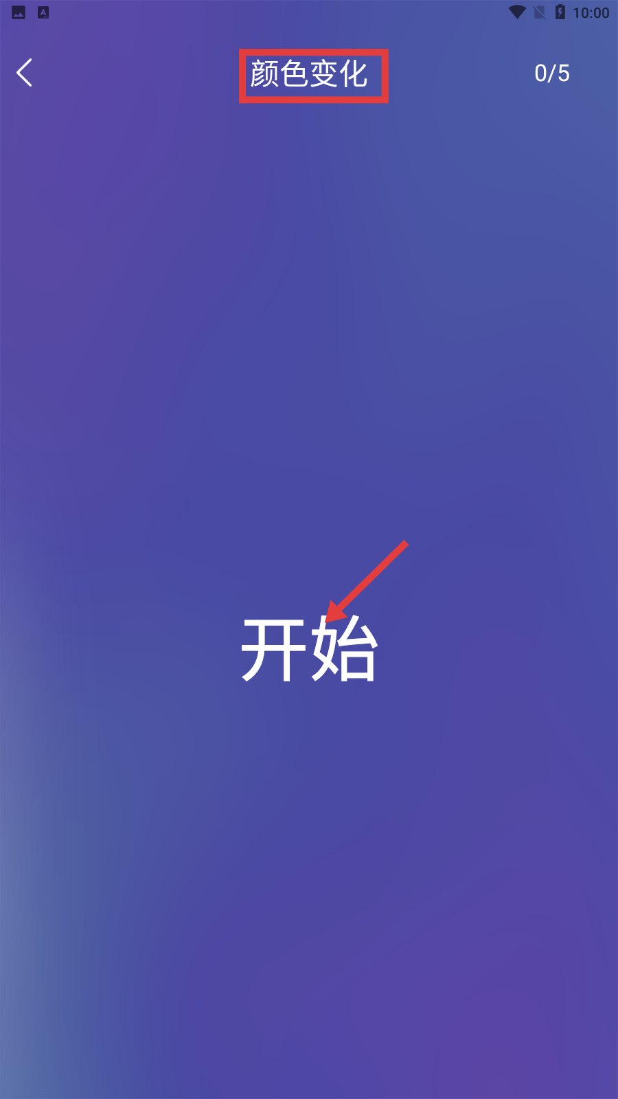 1、启动与开始:启动游戏后点击开始按钮,正式进入训练流程,选择初始项目如颜色变化练习,进行反应判断。