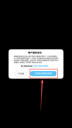 1、点击“同意并继续使用”按钮,接受用户隐私协议。