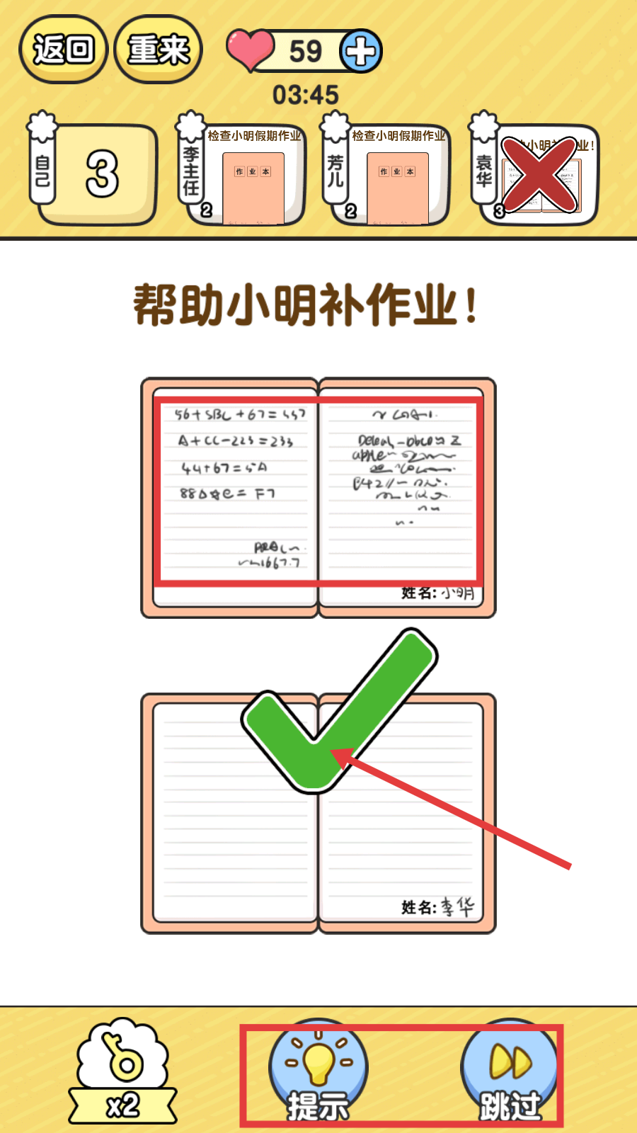 3、作业补完遇难题,可巧用底部【提示】功能,也能选【跳过】快速推进。