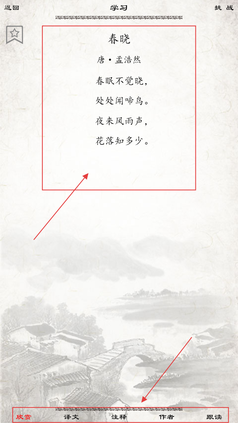 2、背诵挑战模式:设置多个难度关卡,每关包含特定主题古诗,完成任务可解锁新内容,通过闯关激发动力,主动完成目标。