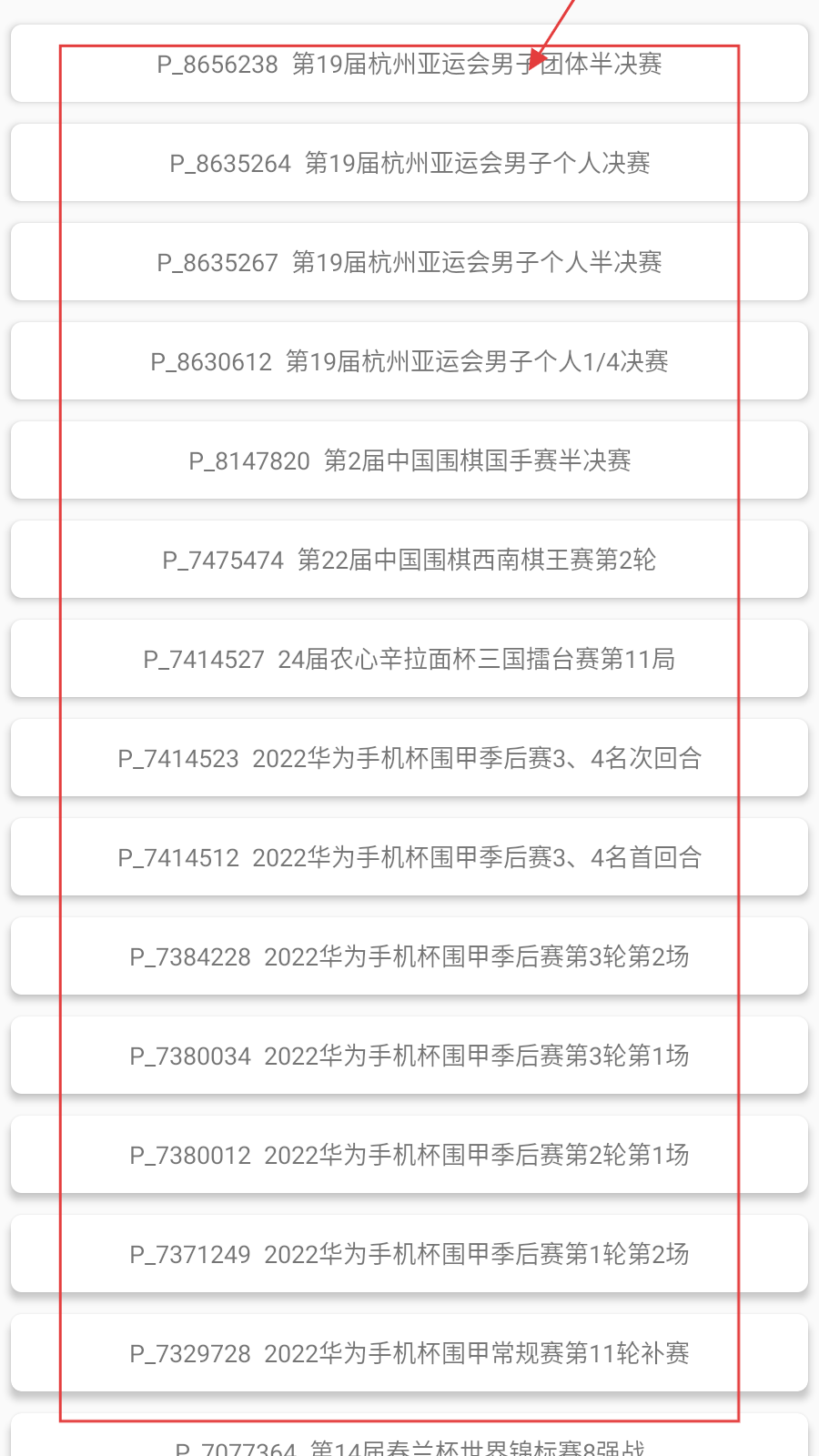 2、在赛事列表,选【亚运会】【围甲】等棋谱,研究职业赛事布局思路。