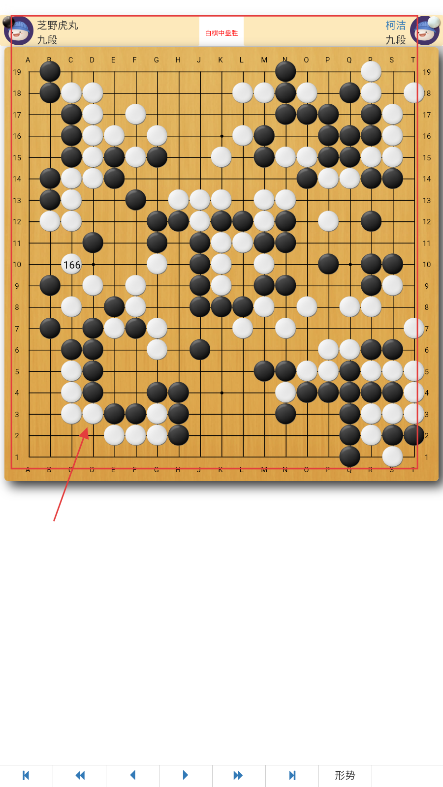 3、打开对局棋盘,观察关键手(如166手),分析中盘胜负要点提升棋力。