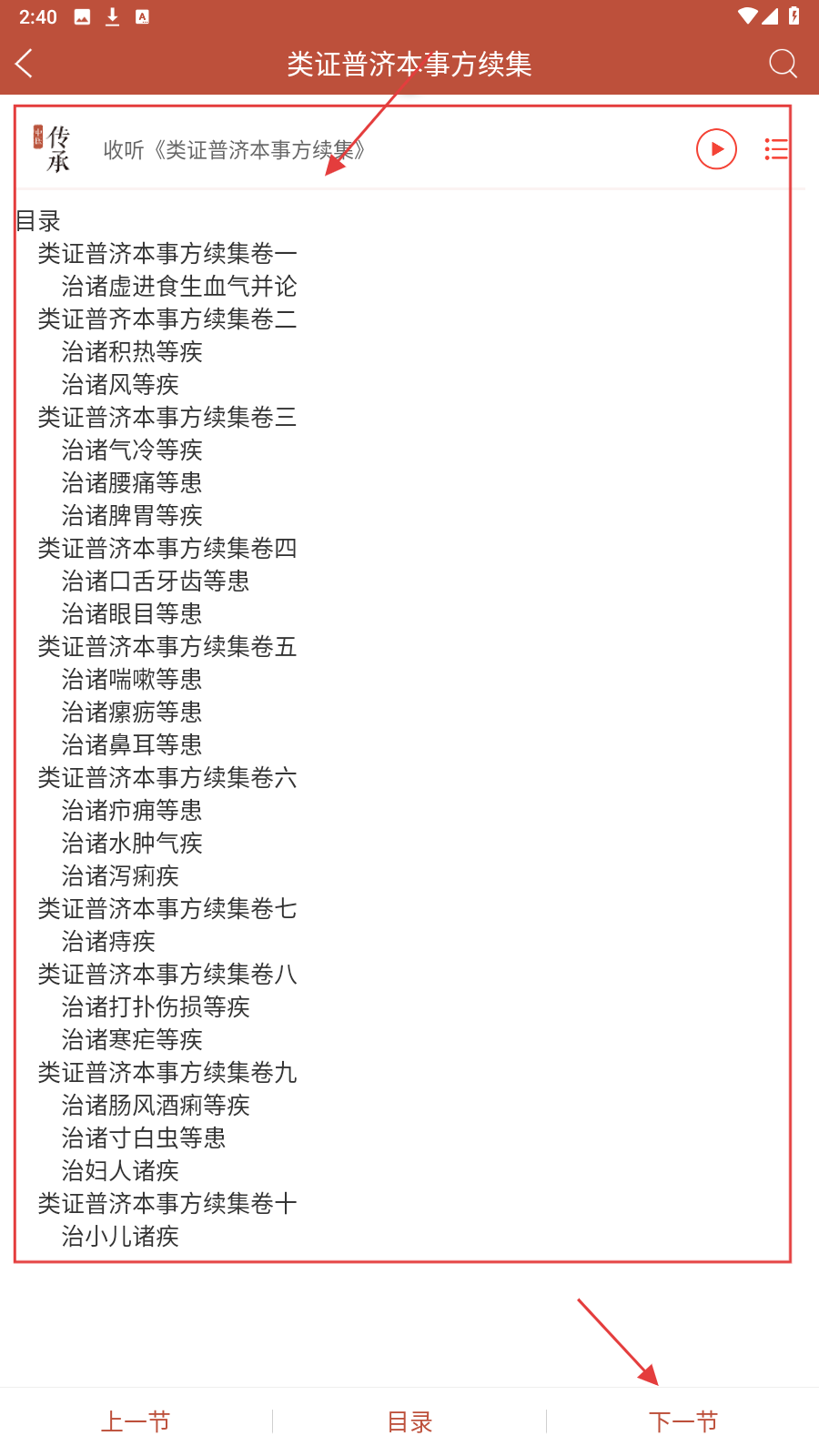 4、阅读页可切换【收听】,按目录选章节(如上卷、下卷),听书学习加深理解。