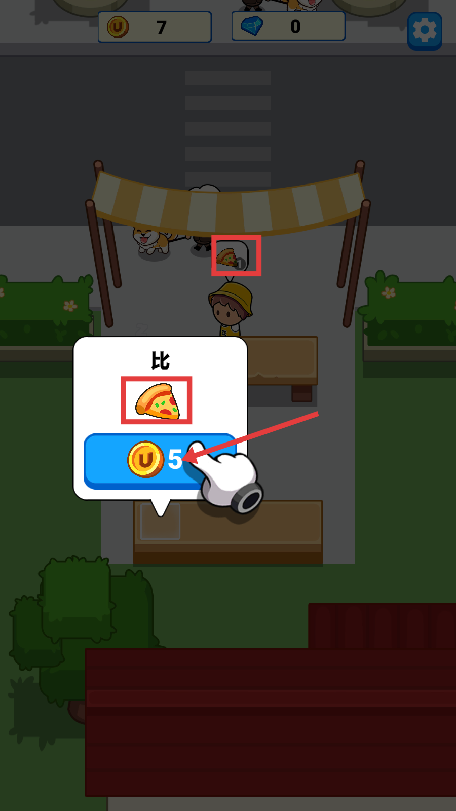 2、顾客需求披萨,花费5金币满足订单获收益。