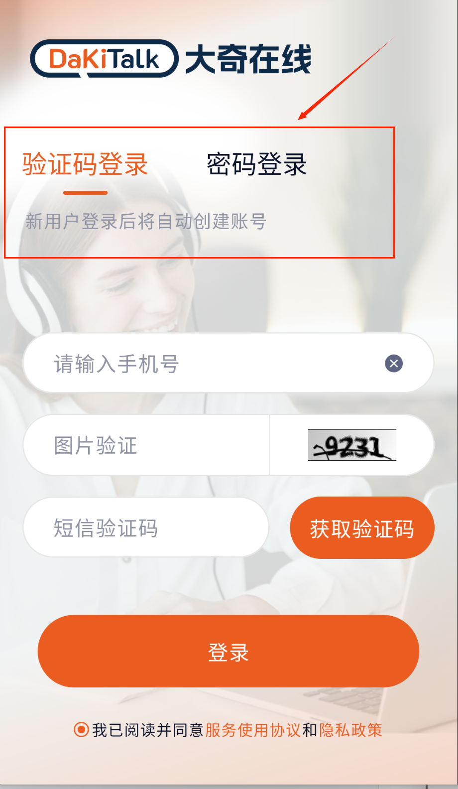 1、打开软件后找到登录页最下方的服务协议和隐私政策链接,记得勾选同意前仔细看看呢。