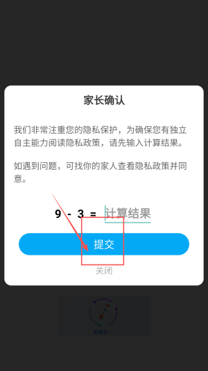2、在“家长确认”页面,输入上方算式结果3,点击“提交”。