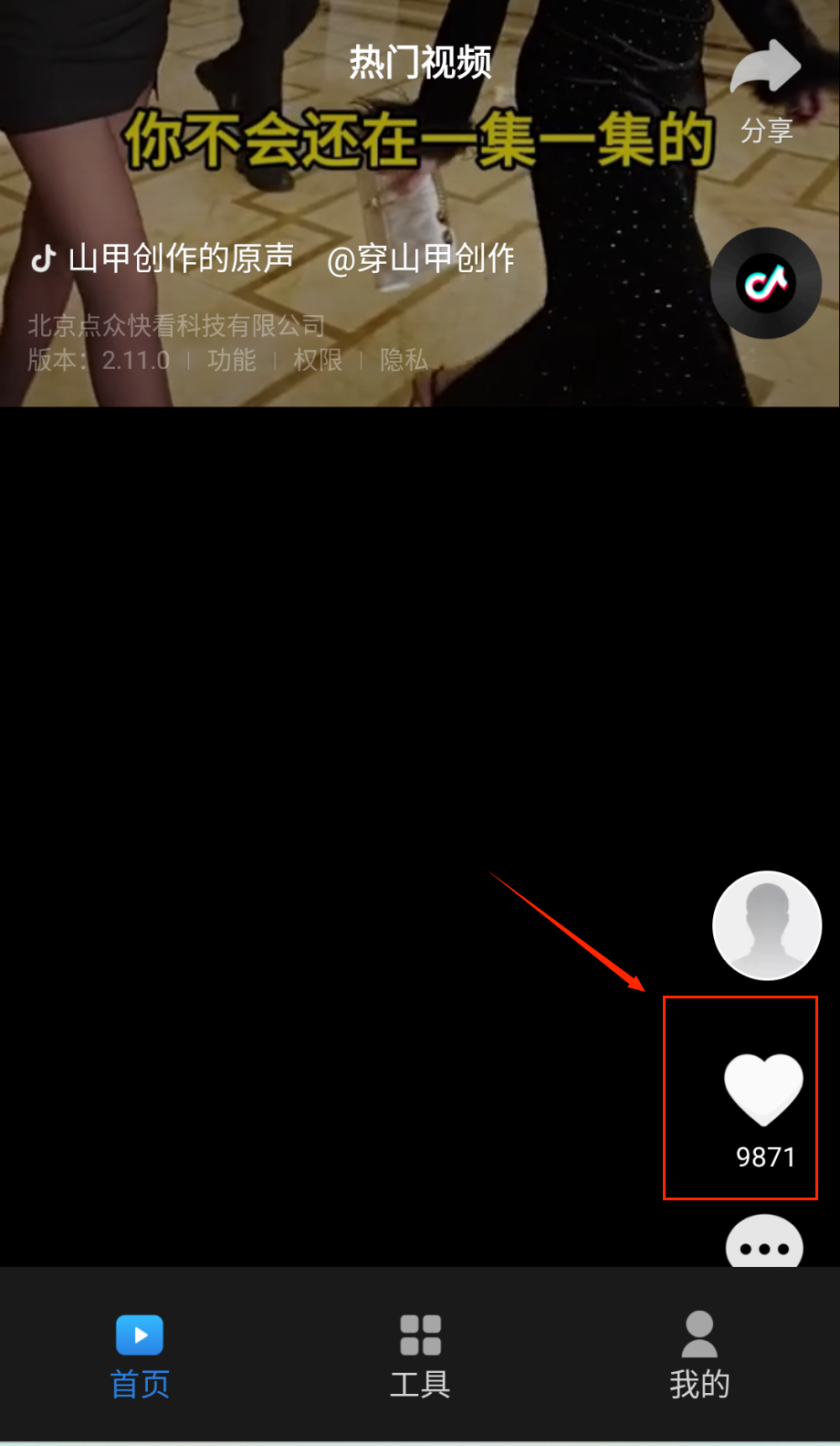 2、在视频播放页面的右下角可以看到一个心形的收藏按钮,点击后该视频会自动保存到你的个人收藏夹中方便以后观看。