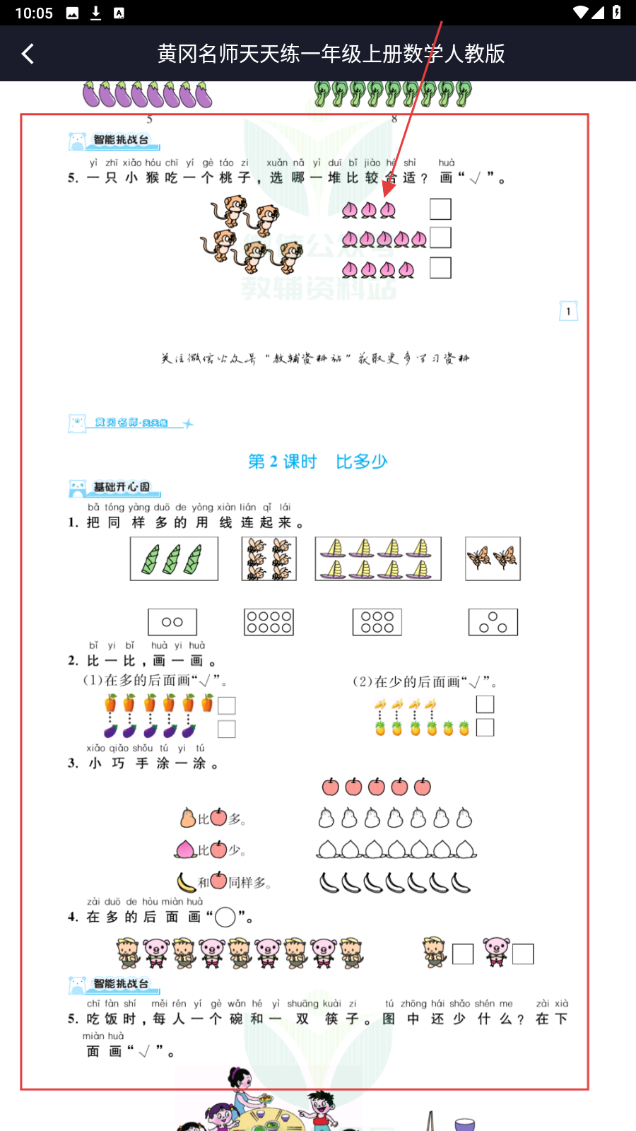 3、进入练习册,根据页面题目(如比多少题型)认真答题巩固知识。