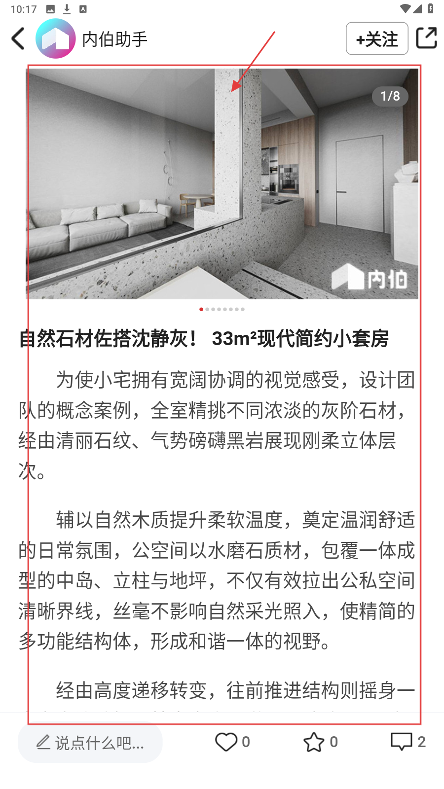 2、看中案例点进详情,仔细阅读文字介绍,了解设计思路、材质运用等装修要点。